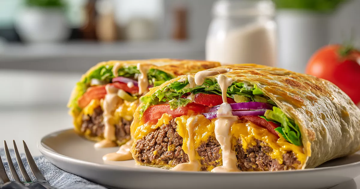 На канале «Люда Изи Кук» хозяйка готовит необычный бургер в тортилье — быстрый, вкусный и сытный, с говяжьей котлетой, сыром и свежими овощами!
