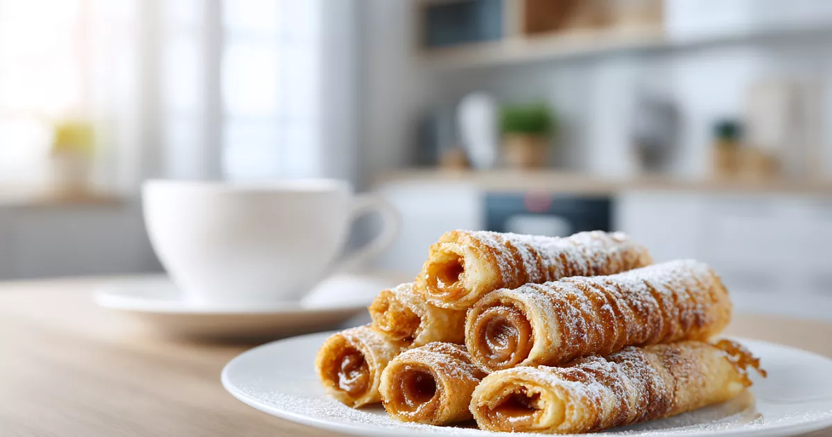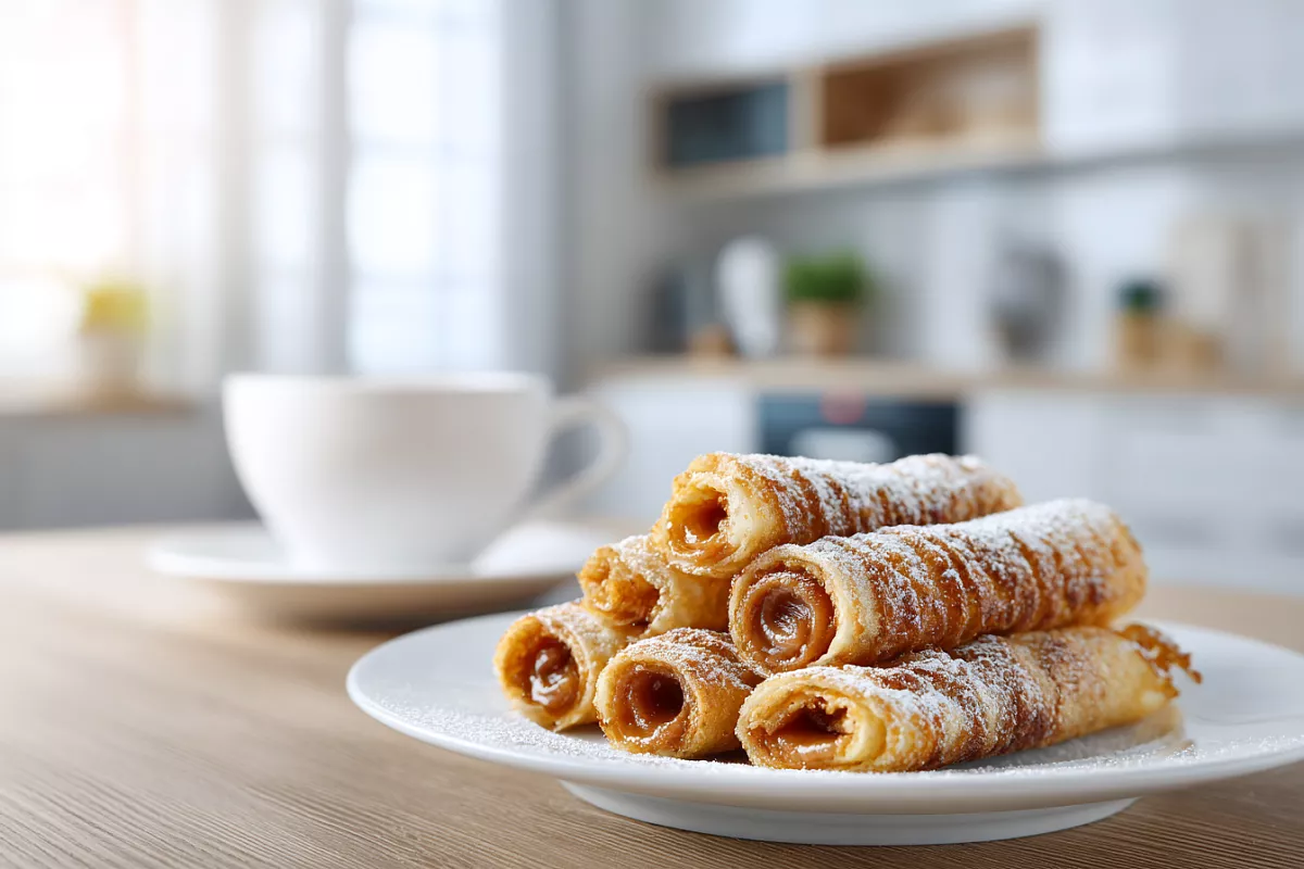 Разогреваем блинную сковороду (сухую, без масла) на среднем огне, затем убавляем чуть ниже среднего. Выкладываем 1,5 ст. ложки теста, распределяем тонким слоем второй ложкой, смазанной растительным маслом. Для хрустящих вафель делайте слой тоньше, для мягких — чуть толще. Жарим 2–3 минуты с каждой стороны до румяности. Снимаем, сразу сворачиваем в трубочки руками или лопаткой (осторожно, горячо!). Остывшие трубочки начиняем варёной сгущёнкой (150–200 г) через кондитерский мешок с круглой насадкой. По желанию украшаем края орехами.