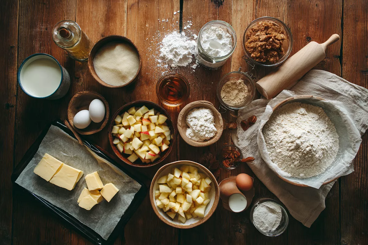 Для начинки очищаем 1 кг яблок, режем мелкими кубиками. В сотейнике смешиваем яблоки, 5–6 ст. ложек сахара, щепотку ванилина (или 1 ч. ложку корицы), 50 г сливочного масла. Тушим на среднем огне 10 минут до мягкости, помешивая. Всыпаем 1 ст. ложку кукурузного крахмала, готовим ещё 2 минуты до загустения. Остужаем.