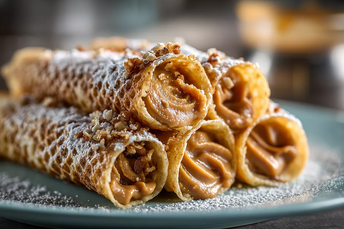 Маленькие хитрости для хруста. Если первый коржик вышел мягковатым, распределяйте тоньше и подержите на огне чуть дольше, не перегревая сковороду. Для равномерного румянца перед каждой вафлей коротко перемешивайте тесто, чтобы мука не оседала, а консистенция оставалась одинаковой. Готовьте партиями: пока одна вафля печётся, предыдущие уже остынут — так трубочки сохранят хруст и форму.