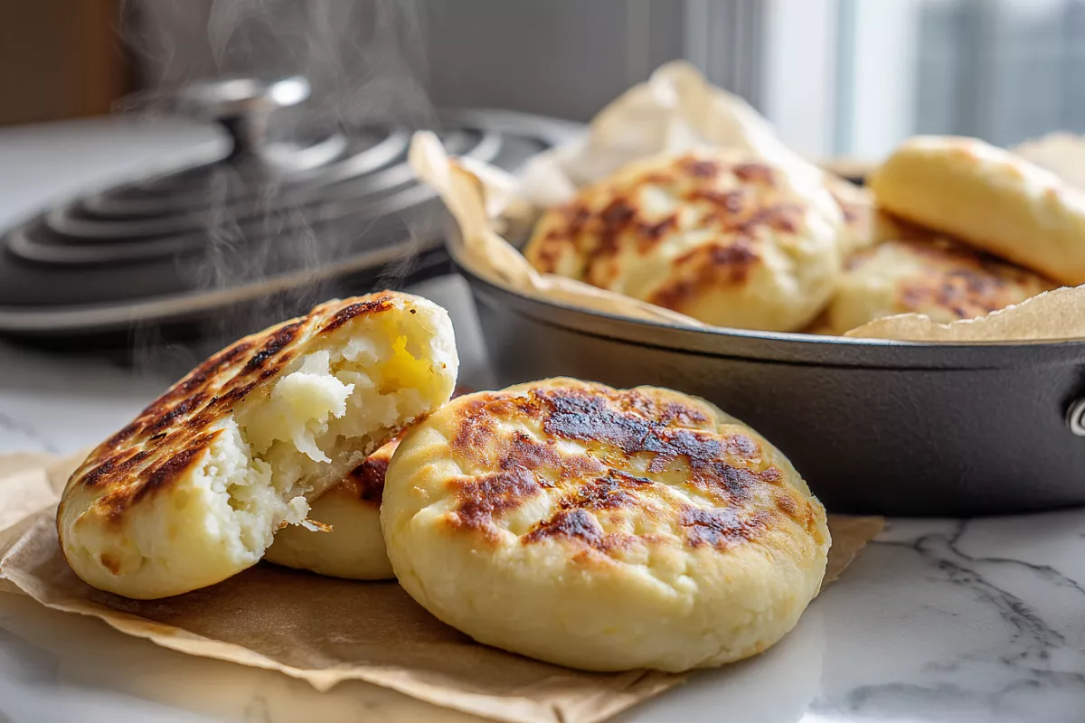 Начинки и нюансы. Классика — картофельное пюре с обжаренным луком. Подойдут тушёная капуста, сыр с зеленью, яйца с зелёным луком. Если кефир очень жидкий, тесто выйдет пышнее, но раскатывайте бережно. Сковороду заранее прогрейте лишь до тёплого состояния, иначе низ схватится раньше времени.