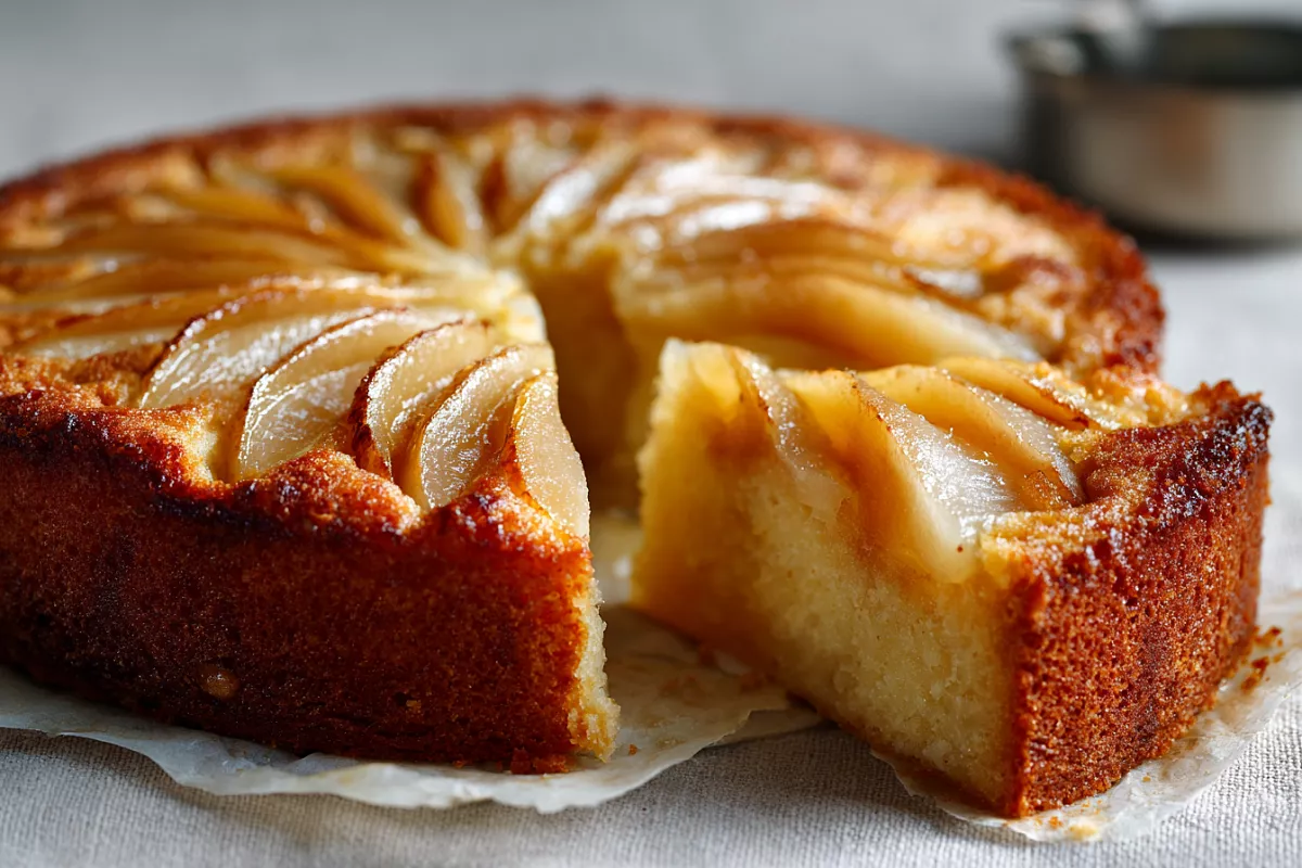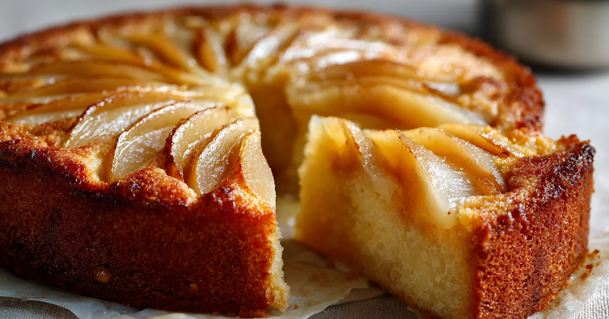 Смысл прост: тонко нарезанные плотные груши «упаковываются» в совсем немного теста с маслом и молоком. Солёная нота здесь намеренная — она подчёркивает карамельность груш и не даёт пирогу стать приторным. Форму берём 20 см, дно застилаем пергаментом и смазываем маслом.