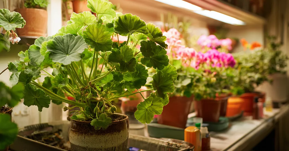 После обрезки через сутки поливаем антистрессовым раствором: 2 мл аминоцимуса + 2 мл «Доктор земли» на 1 л воды. Повторяем через неделю, когда грунт просохнет. Это стимулирует корни и боковые почки. Для зимовки держим герань под фитолампами, чтобы избежать вытягивания. Поливаем умеренно, лучше через поддон. Литровые горшки сдерживают рост, сохраняя компактность. Подкормку зимой не проводим, если не нужно цветение. Весной пересаживаем в горшки 3–5 л для пышного роста.