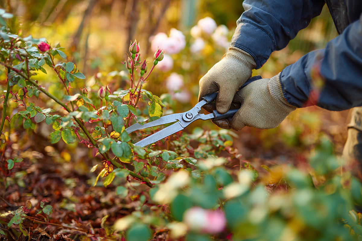 Начинать обрезку следует, когда ночные температуры опустятся до -2…-3 °C. Для разных видов роз техника немного отличается. Кустовые розы очищают от бутонов, листьев, больных и растущих внутрь побегов, а также укорачивают красные или бордовые невызревшие стебли до места изменения цвета. Плетистые и почвопокровные розы требуют минимальной обрезки: удаляют только бутоны, листья и слабые побеги.