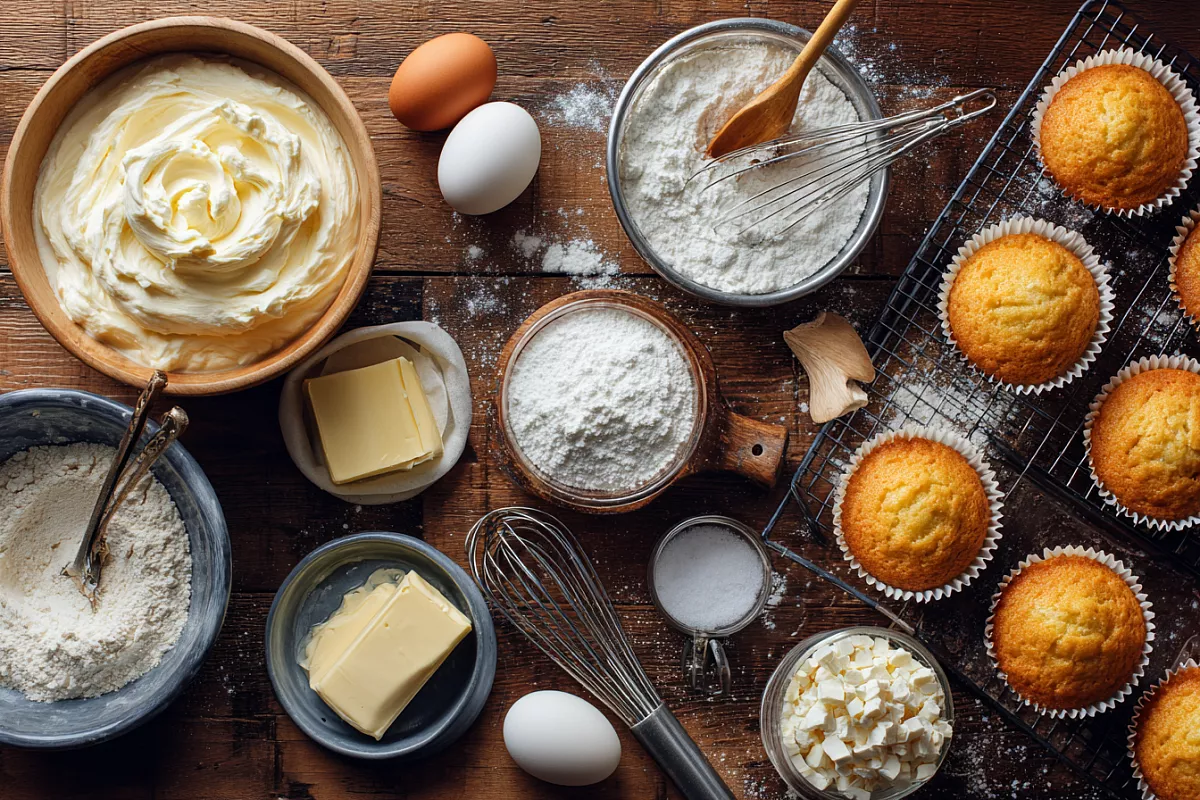 Творожные кексы — идеальный десерт для тех, кто хочет быстро приготовить что-то вкусное и доступное. Для 12 кексов понадобятся творог, яйца, сметана, сахар, сливочное масло, мука и разрыхлитель.