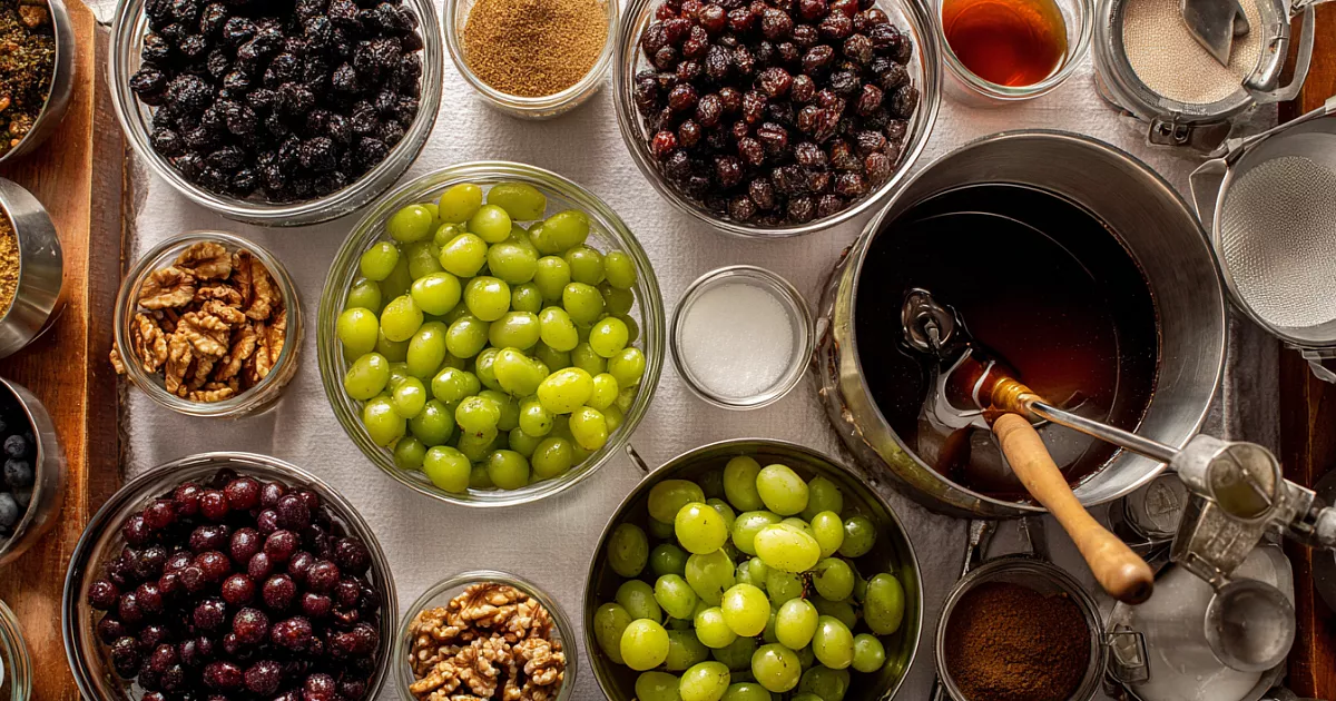 Сахар регулируйте по сорту: дикий и винный виноград кислее, зелёный нежнее. Всегда стерилизуйте банки и разливайте только в кипящий продукт — это прибавляет месяцы к сроку годности. Жмых не выбрасывайте: из него выходит отличный виноградный уксус — дело неторопливое, но простое.
