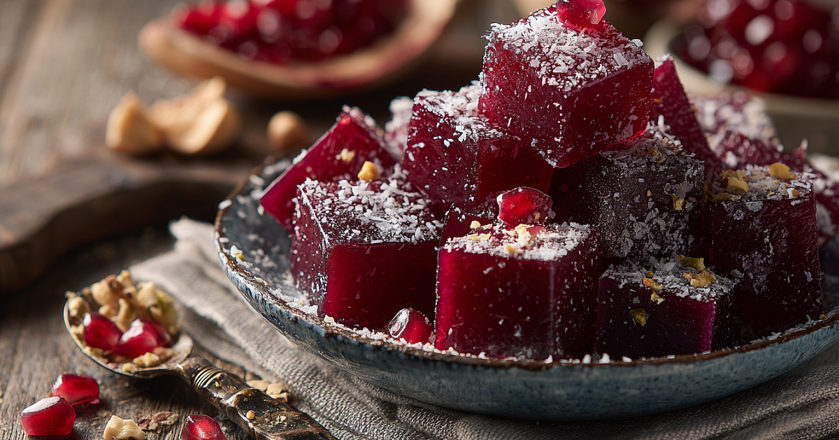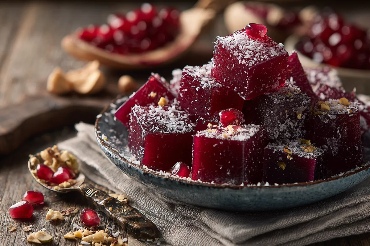 Чтобы крахмал полностью раскрыл загущающую силу, сначала растворите его в холодном соке, а уже потом нагревайте. Если любите кислинку, часть сахара замените на сироп из самого гранатового сока, уварив его отдельно до лёгкой карамельной ноты. Форму удобнее выстелить пергаментом — так лукум легче выходит и сохраняет края.