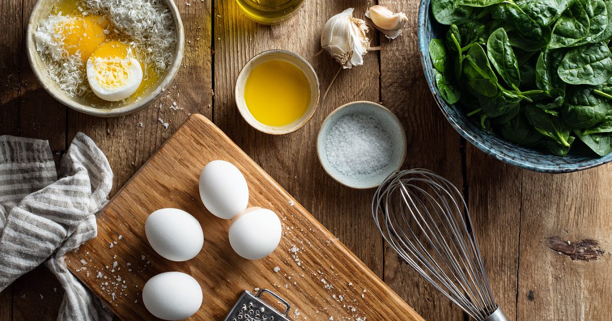 Свежий шпинат, тёртые яйца и ложка домашнего майонеза — за пять минут получается лёгкая намазка к багету, крекерам и сытным бутербродам.