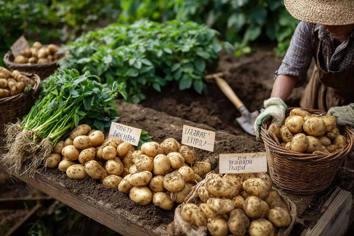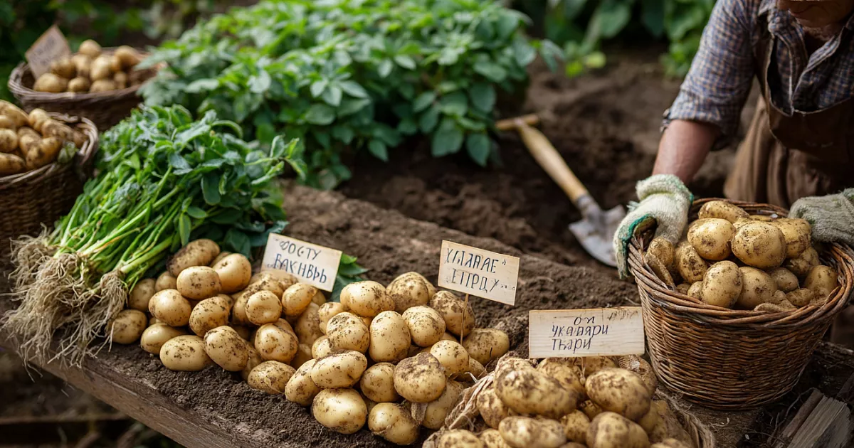 Первый сорт — «Терра». Это ультраранний картофель, готовый к уборке через 60 дней после всходов. Клубни достигают салатного размера, с кремовой мякотью, которая в меру разваривается и подходит для варки и жарки. Урожайность впечатляет: с двух кустов Светлана собрала полное ведро. Ботва ложится, сигнализируя о зрелости, а кожица легко скоблится ногтем. «Это моя новая любовь — универсальная и вкусная!» — делится она.