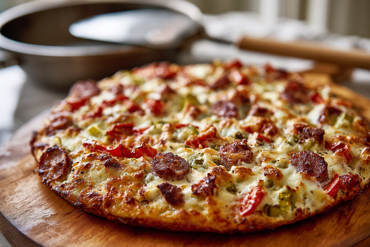 Когда времени мало, а хочется домашней пиццы, выручает тесто «как густая сметана» и сковорода с крышкой. Хруст снизу, много начинки сверху — и обед готов.