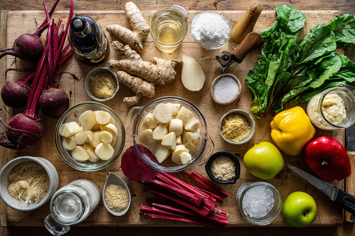 Хрен со свёклой — корни хрена 150 г; свёкла маринованная 150–200 г; рассол 150 мл