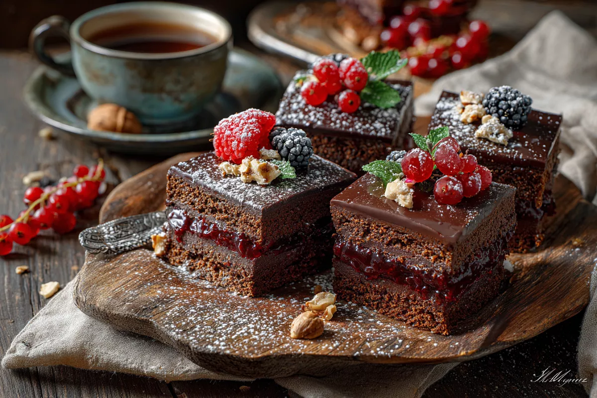 Пирожное получается влажным, с насыщенным шоколадным вкусом, мягкой помадкой и лёгкой кислинкой джема. Это идеальный вариант для праздника или уютного чаепития, который не уступает ресторанным десертам.