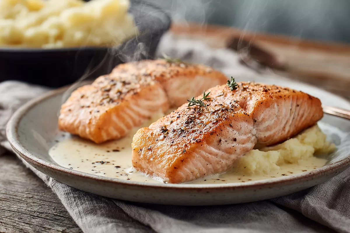 Простой способ спасти «суховатую» горбушу: запечатать стейк на сильном огне и довести в нежном луковом соусе прямо на сковороде.