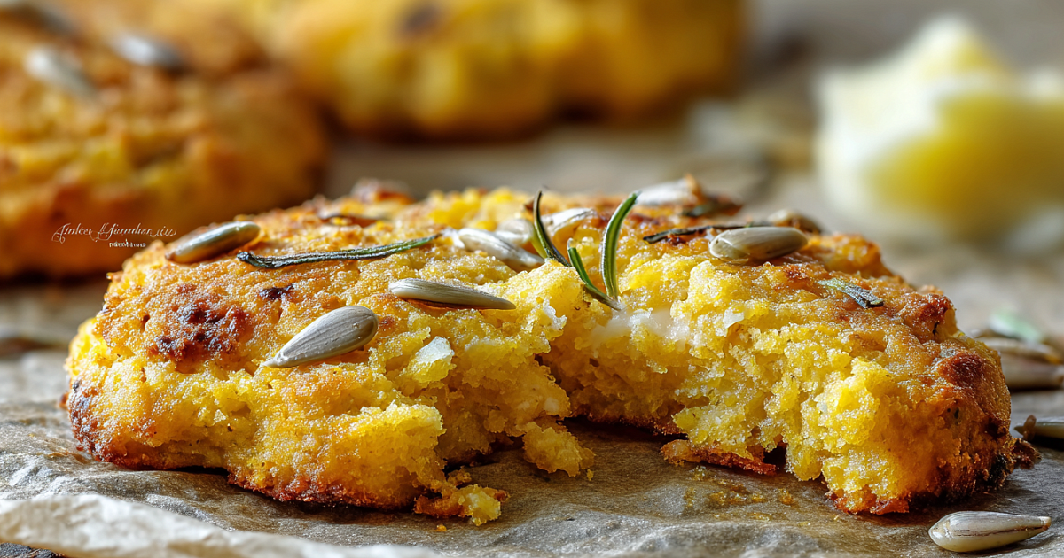 Это не сладкое печенье, а закуска: сливочное масло и твёрдый сыр дают жирность и вкус, розмарин — эфирную хвойную нотку, а семечки — хруст и аромат. Кукурузная мука делает печенье желтоватым и отличным по текстуре: оно не воздушное, зато очень характерное и рассыпчатое.