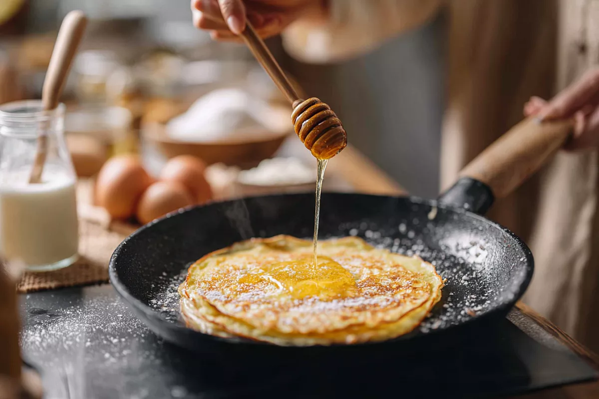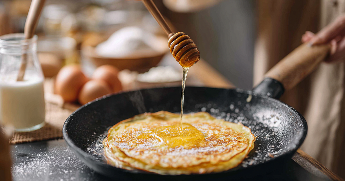 Этот алжирский завтрак на сковороде — сытное и быстрое блюдо, идеальное для утра. Автор рецепта уверяет: «Не бисквит, но невероятно вкусно и готовится за минуты!» Для рецепта нужны яйца, молоко, мука, масло, мёд и специи.