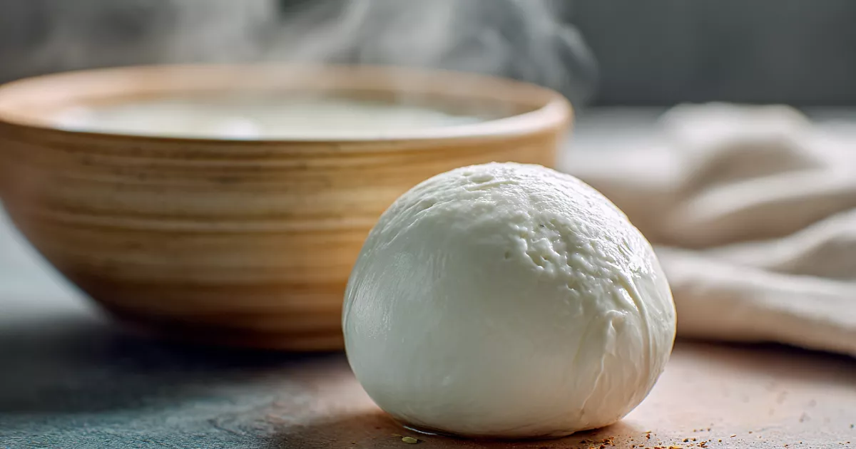 Нужны только сырое молоко и уксус: за полчаса получится нежный шар моцареллы с чистым молочным вкусом.