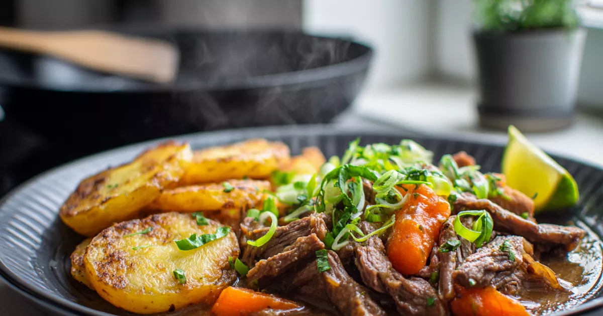 Мини-советы. Не мешайте мясо часто — дайте подрумяниться. Картофель солите умеренно: лимон и лаврушка уже добавят «характера». Крахмал заранее разводите в холодной воде — соус получится без комков и ровной густоты.