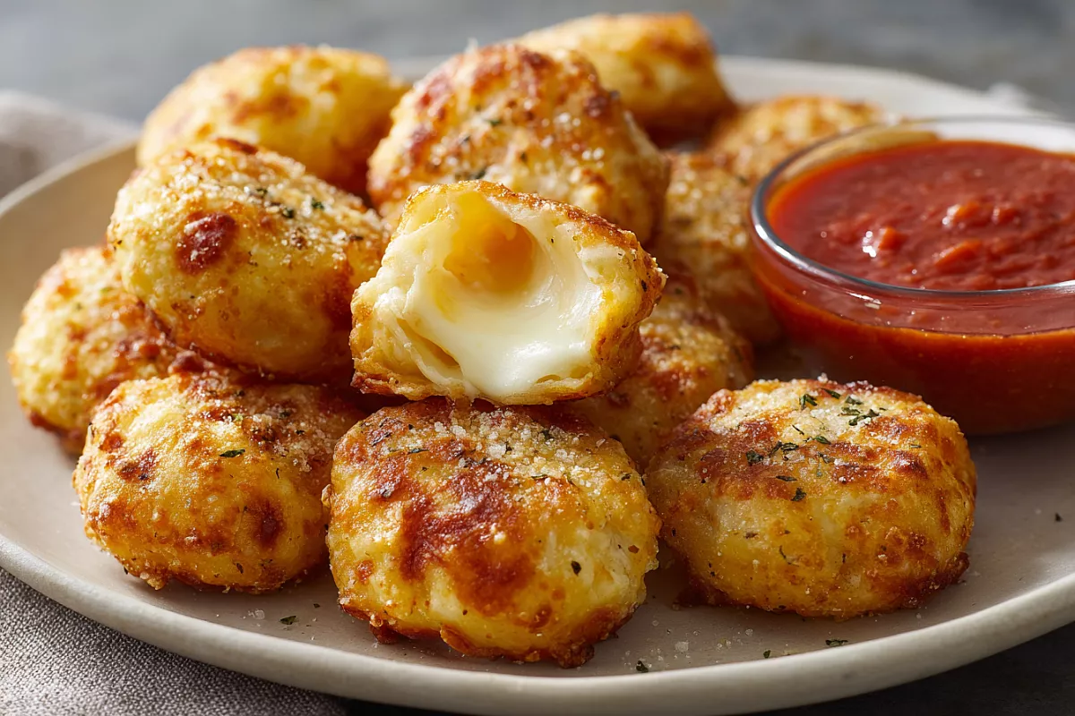 Эти шарики с томатом в стиле пиццы — хрустящие снаружи, кремовые внутри и со вкусом настоящей пиццы. Подайте с ложечкой соуса — будет идеальная закуска.