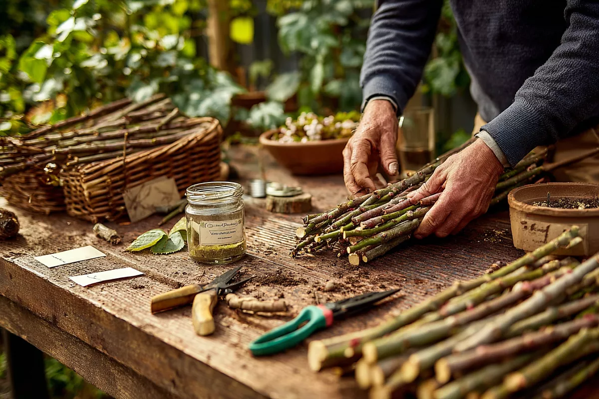 Для успешного укоренения черенки нарезают длиной 20–30 см. Верхний срез делают прямым над почкой, нижний — косым под почкой, чтобы не перепутать верх и низ. В сухую осень побеги замачивают на сутки в растворе сенной палочки, например, «Новоспарина». «Сенная палочка проникает в ткани черенка, стимулируя корнеобразование», — объясняет эксперт. Это повышает приживаемость до 99%.