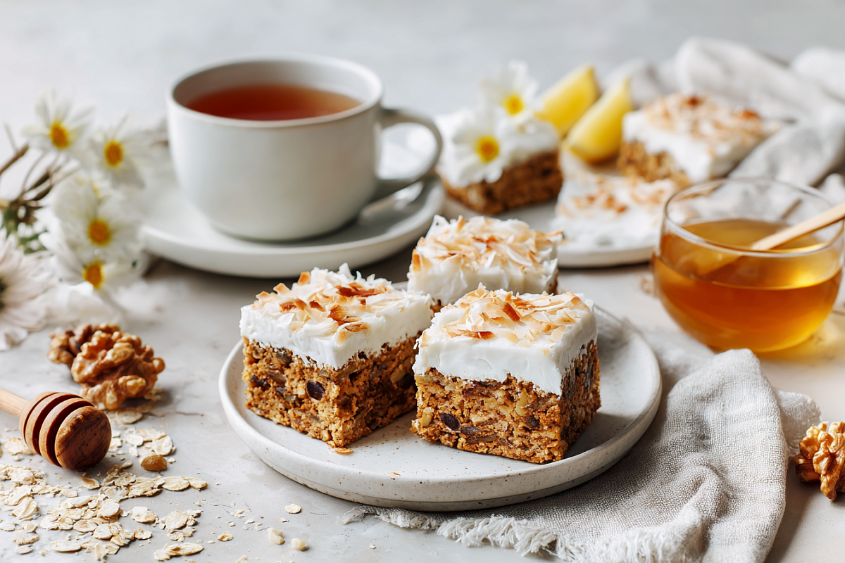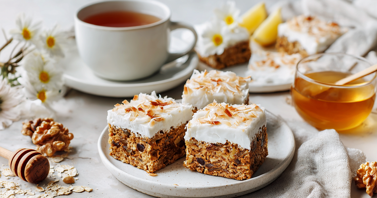 Для крема смешивают 200 г греческого йогурта, 300 г сливочного сыра, 80–100 г сливок (20% жирности) и две столовые ложки мёда, взбивая блендером до гладкости. Остывшую выпечку разрезают на порционные куски, обильно смазывают кремом со всех сторон и посыпают кокосовой стружкой. «Крем впитывается, создавая волшебное сочетание вкусов», — делится автор рецепта. Пирожные подают с чаем из каркаде и чёрного чая с добавлением трёх долек лимона.