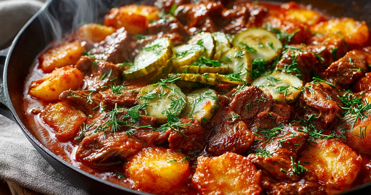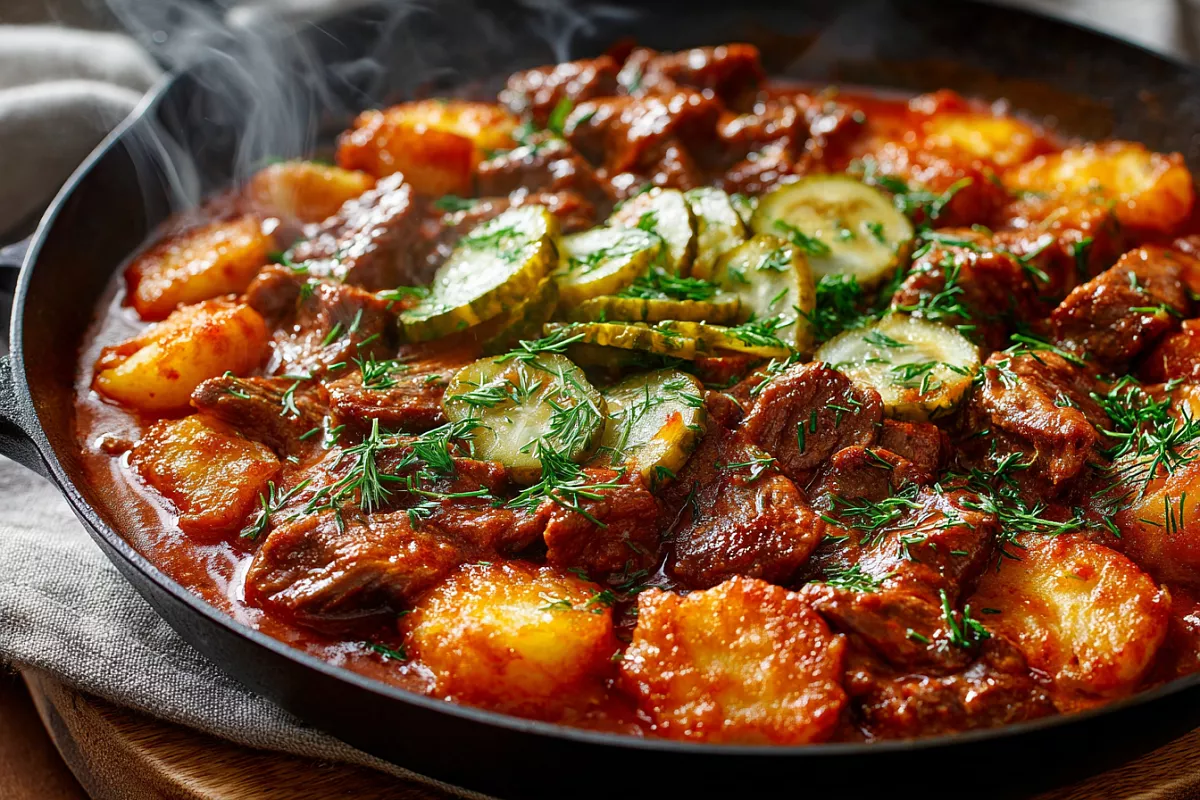 Азу по-татарски из говядины с жареной картошкой — запах на всю кухню и вкус, ради которого просят добавку.