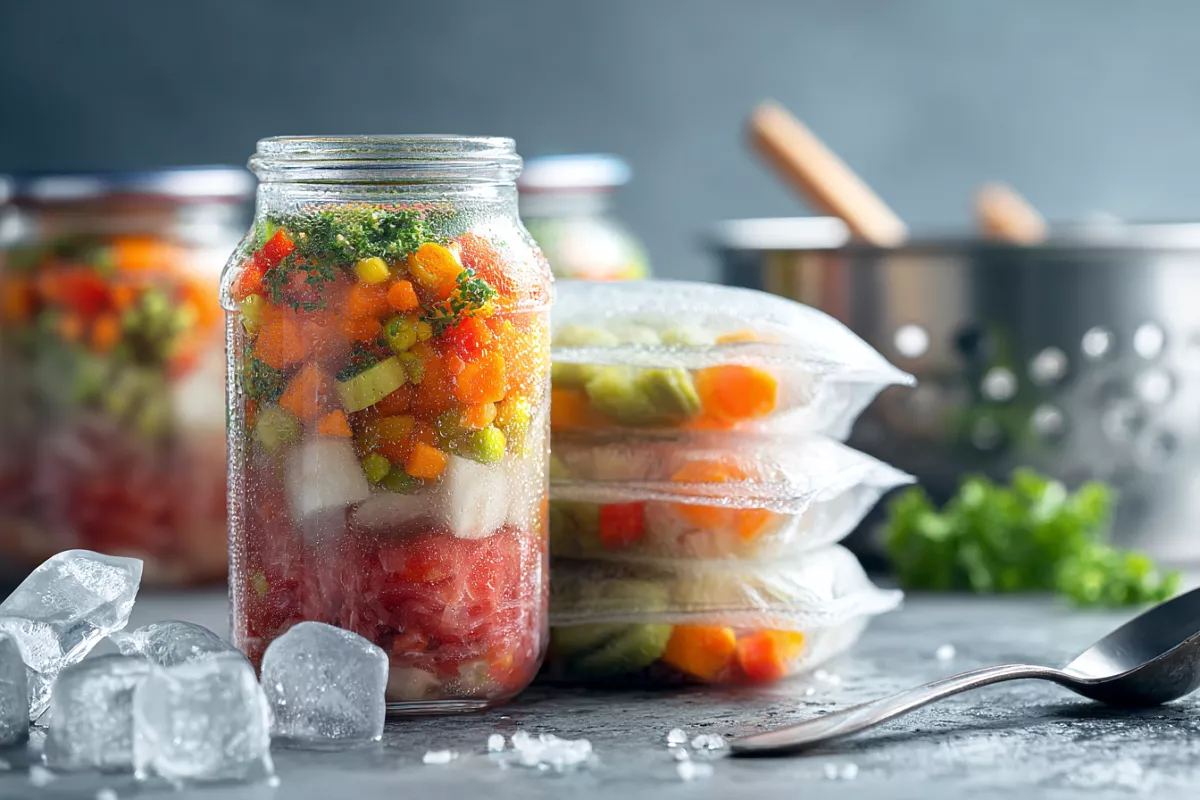 Для быстрого ужина держу в морозилке плоские пакетики. Надеваю маленький пакет на руку, кладу внутрь по 3–4 ложки смеси, выталкиваю воздух, сворачиваю «конвертом» и слегка прижимаю — так брикеты занимают меньше места и быстрее промерзают. Складываю стопкой и отправляю в морозильник. Зимой такой брикет легко вынуть из пакета и сразу опустить в кастрюлю или на сковороду.