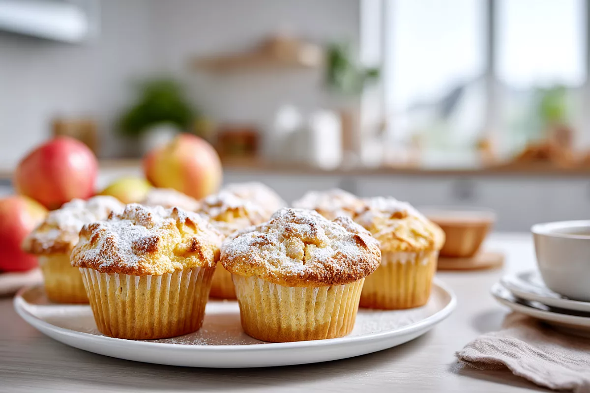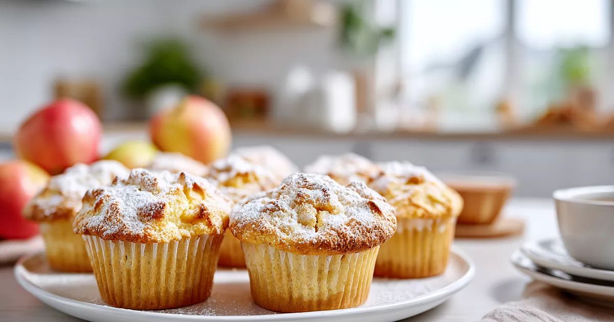 Для 10–12 маффинов берут 220 г творога (любой жирности), 2 яйца, 80 г мягкого сливочного масла, 100 г сахара, 180–200 г муки, 8 г разрыхлителя, щепотку соли и 1–2 яблока.