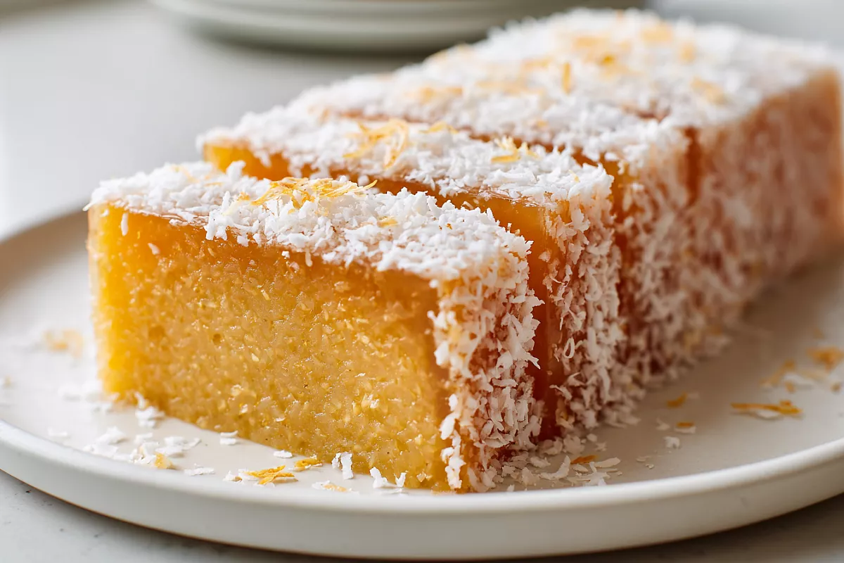 Достаньте пласт, обваляйте в кокосовой стружке — она легко прилипает к плотным, гладким бокам и добавляет мягкий «снежный» оттенок вкуса. Нарежьте порционно: внутри десерт нежный, но форму держит хорошо.