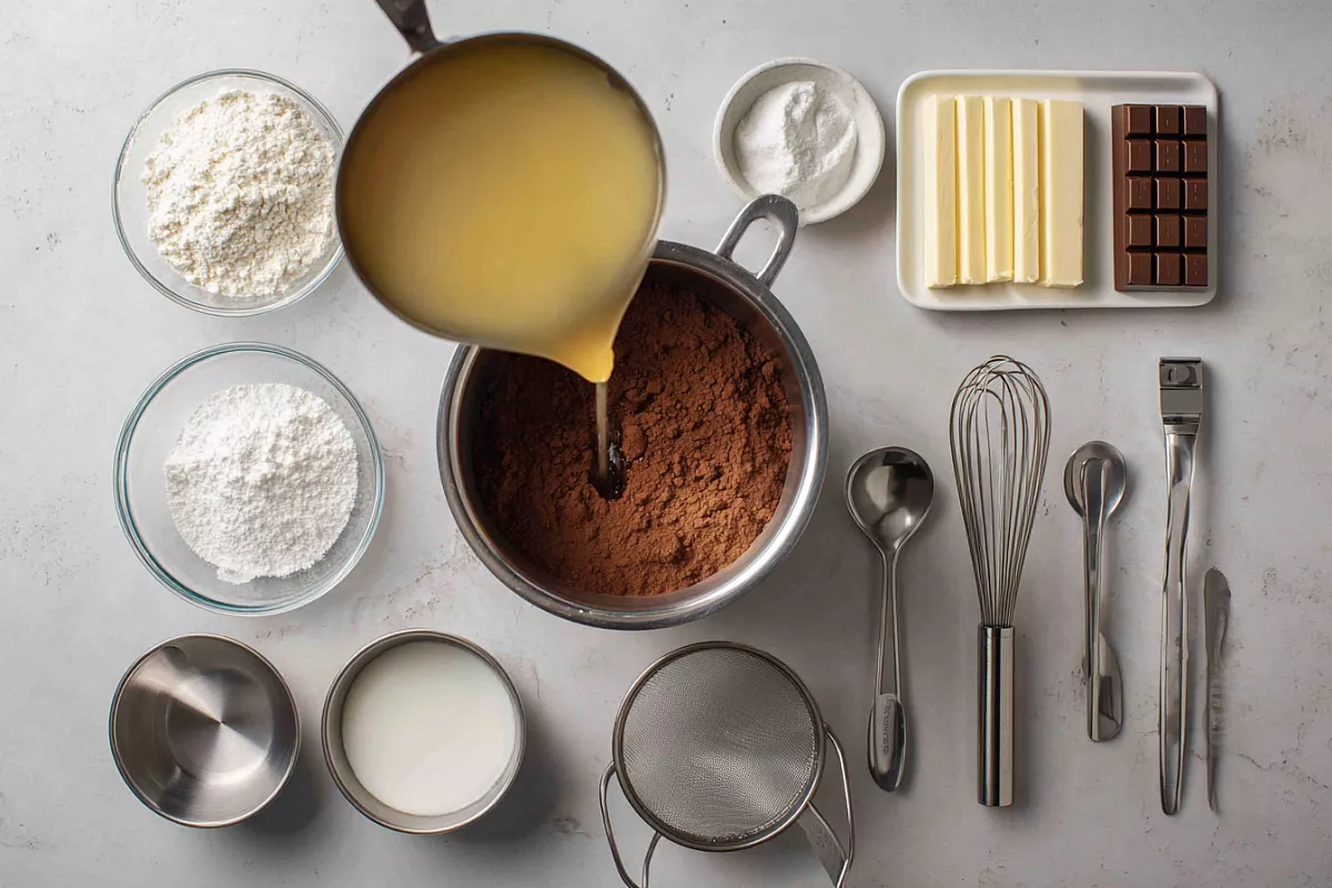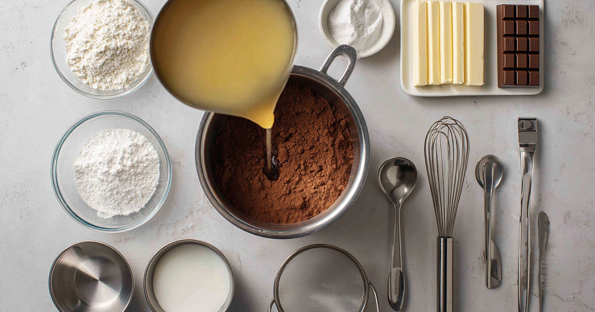 Просейте какао в миску, чтобы убрать комочки и насытить порошок воздухом. Добавьте сухое молоко и перемешайте венчиком до равномерного цвета — так потом не останется светлых прожилок.