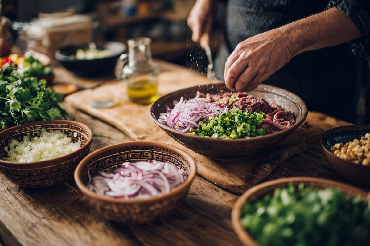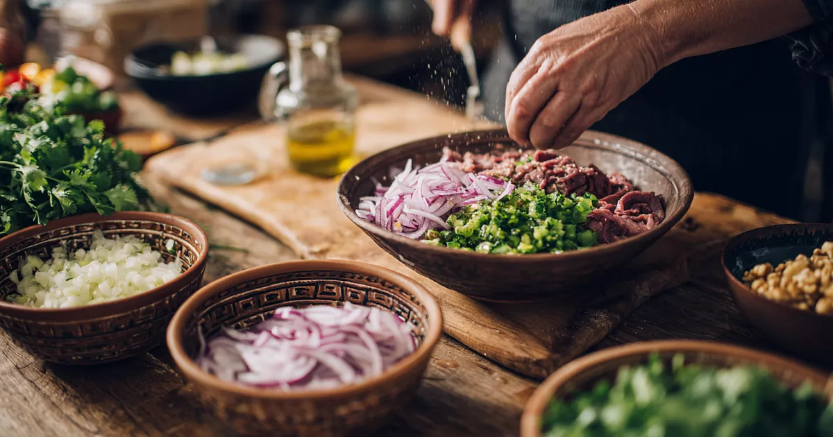 Салат Тбилиси — яркий, пряный, праздничный. Простой рецепт для душевного застолья.