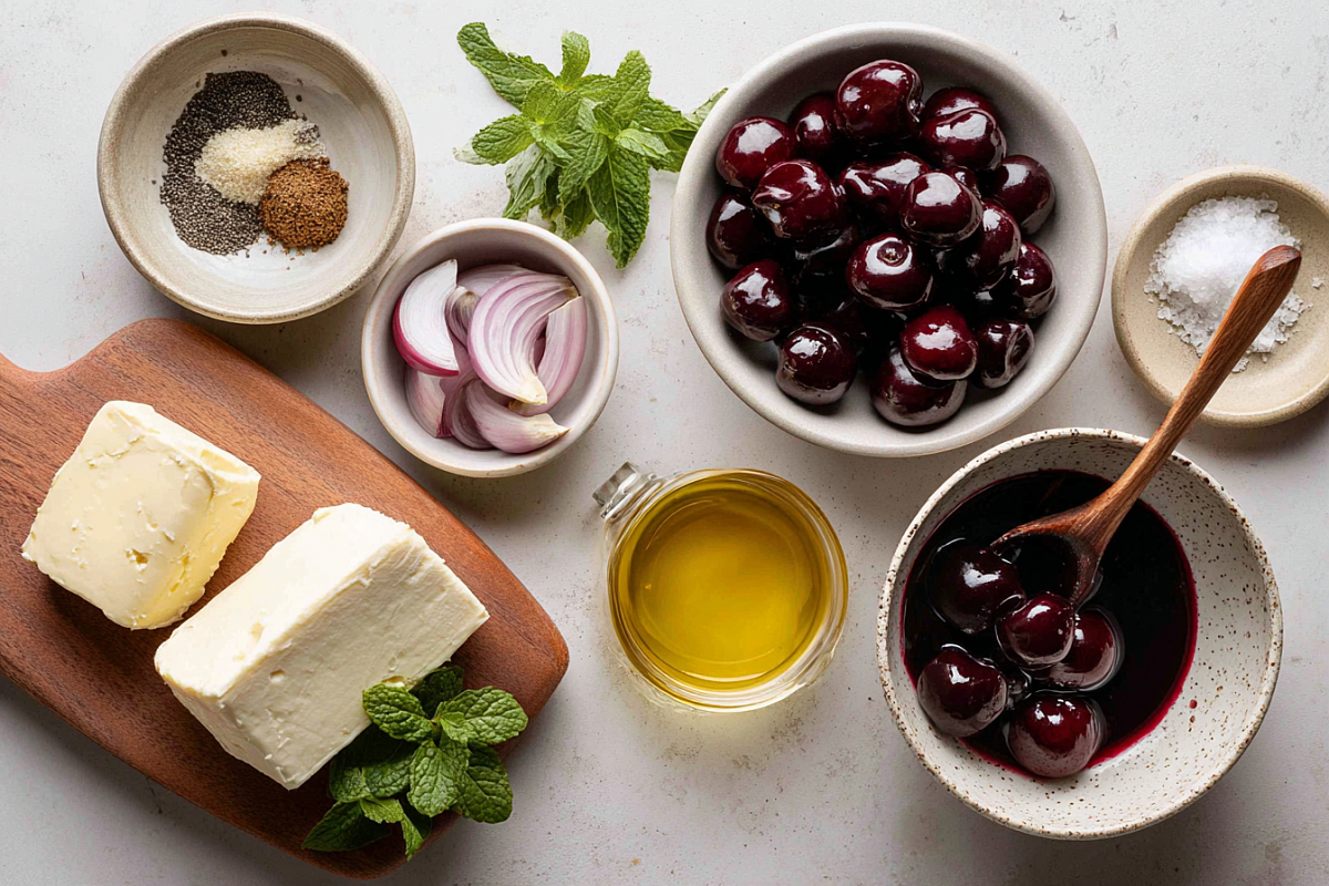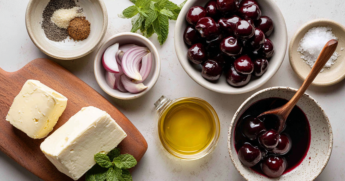 Черешню заранее освободите от косточек (удобно выколоткой), затем разрежьте пополам. Лучше брать плотные ягоды, чтобы держали форму при нагреве. Мелко нарежьте лук-шалот; если берёте репчатый, крошите его кубиком.