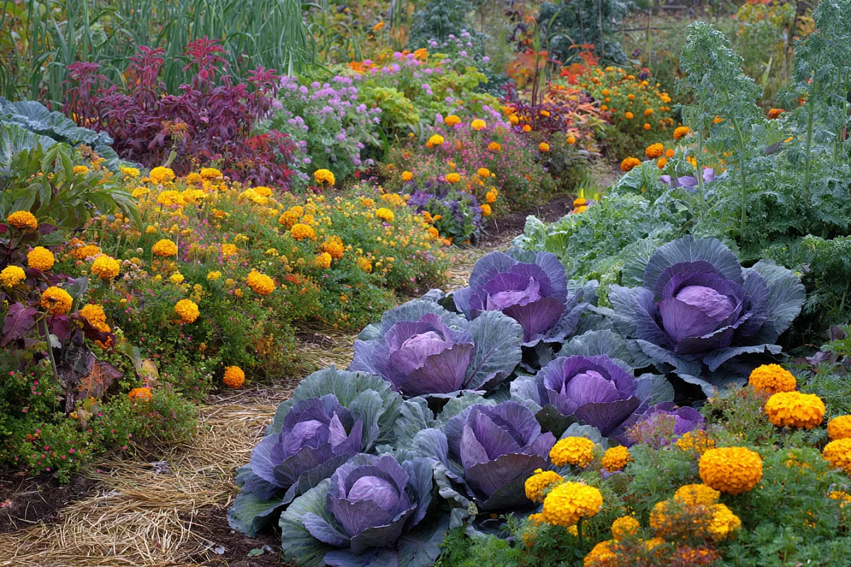 Листовая капуста (кейл) — фиолетовая и зелёная — украшает грядки до поздней осени. Она не только красива, но и съедобна: готовьте салаты, супы или квасьте. Для яркости высаживайте бархатцы или базилик на торцах грядок с томатами — базилик улучшает их вкус. Петунии рядом с картофелем отвлекают тлю и снижают риск вирусов. Смешанные посадки — будущее огорода, уверяют агрономы.