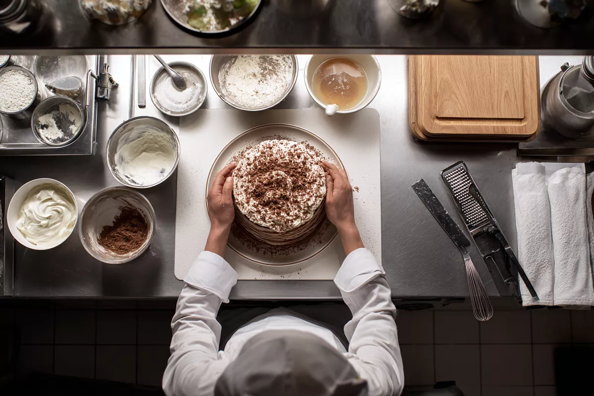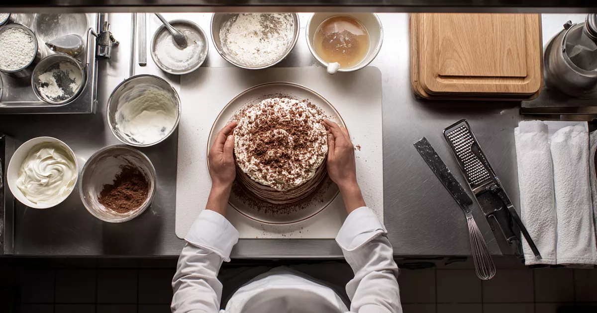 Шоколадные блины, нежный крем из двух ингредиентов и немного терпения — получится десерт с ярким вкусом и аккуратным разрезом.
