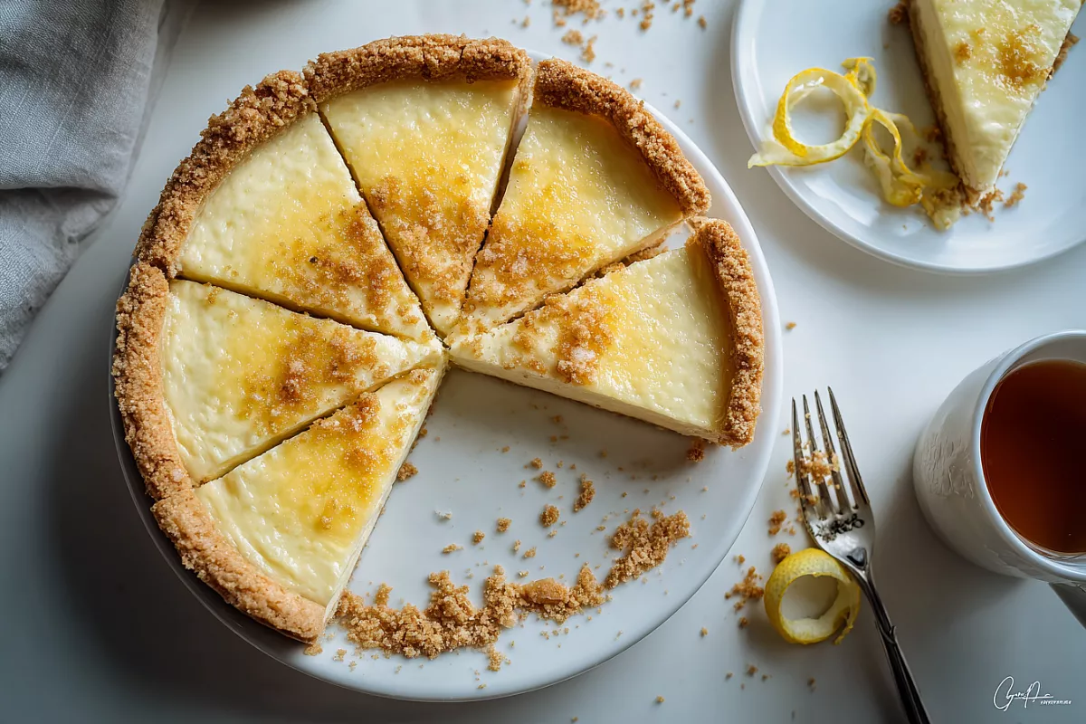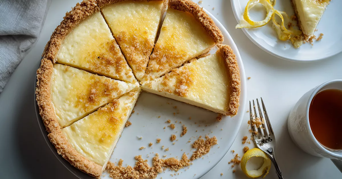 Перелейте начинку в охлаждённую основу. Выпекайте при 170 °C 40–45 минут до лёгкого схватывания центра: при покачивании середина дрожит, но бортики устойчивые и румяные. Не передерживайте — это важно для нежной текстуры.