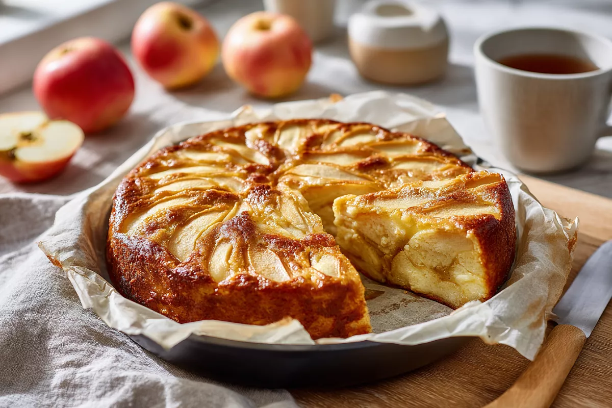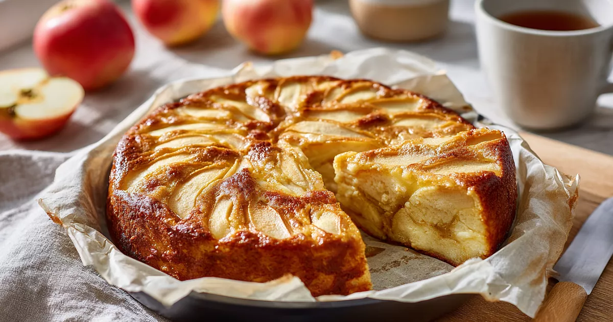 Французский яблочный пирог без миксера и духовки — нежный, как пирожное, с кремовой текстурой. Готовим на сковороде!