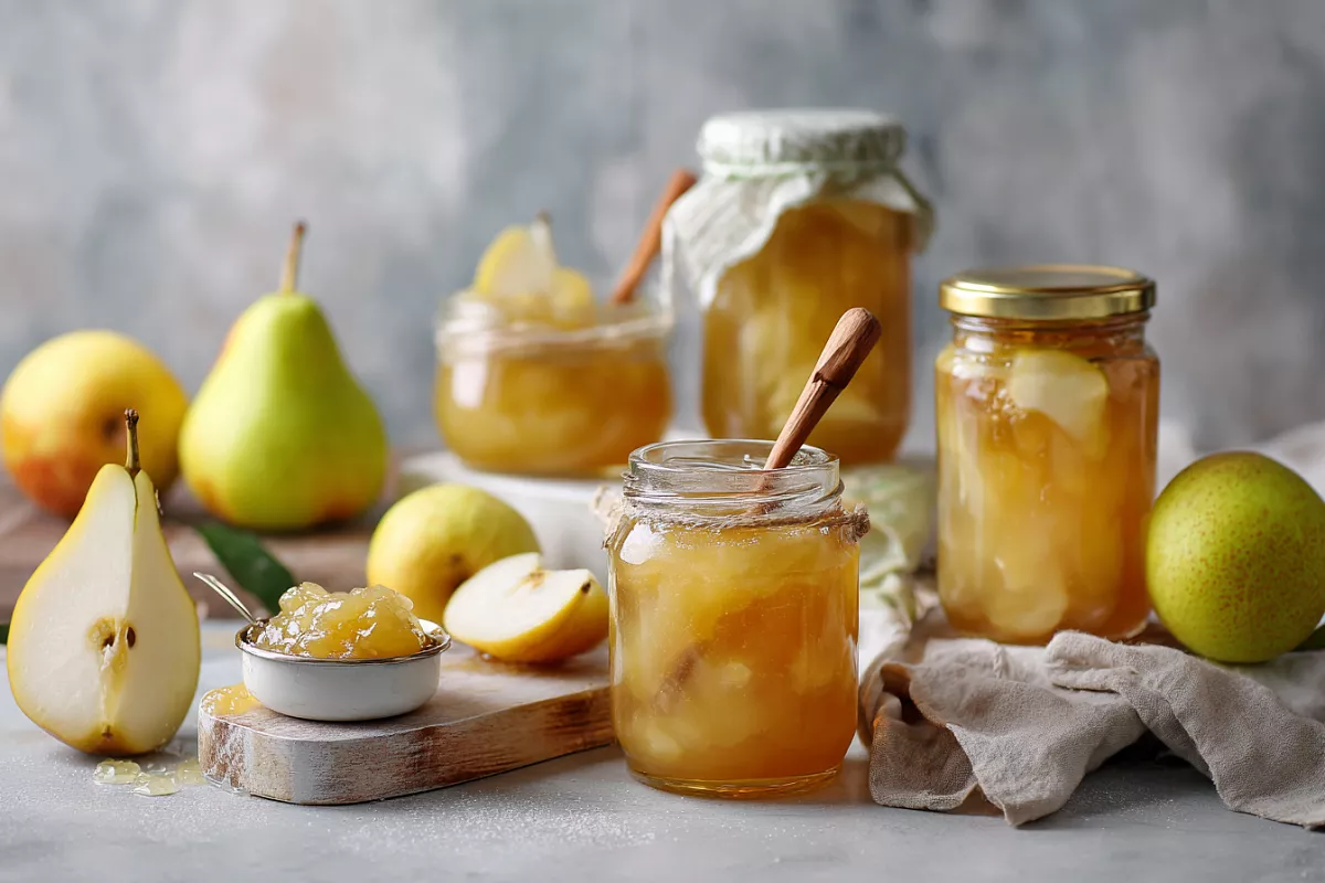 Для второго способа очистите 2 кг груш от кожицы и нарежьте дольками. Засыпьте 1 кг сахара, влейте 200 мл воды, чтобы груши не пригорели. Поставьте на слабый огонь и доведите до кипения. Выключите и дайте остыть. Повторите варку 2 дня по 5 минут, доводя до кипения. На последнем этапе добавьте 0,5 ч. ложки лимонной кислоты и щепотку молотого имбиря для аромата. Если любите свежий имбирь, натрите небольшой кусочек.