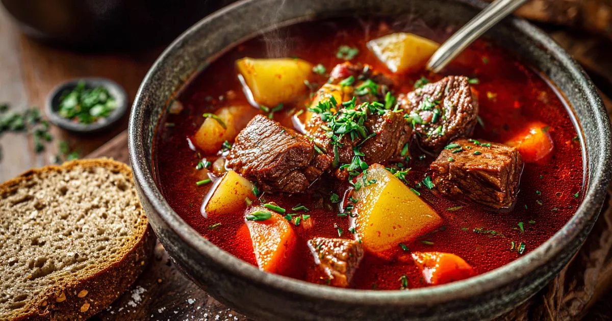 Один горшочек — два блюда: наваристый суп и сытный гуляш. Мясо тает, картошка разваривается, аромат — по всей кухне.