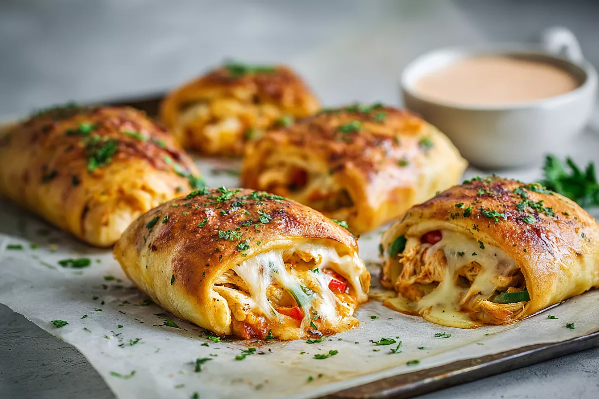 Подавайте горячими с соусом. Совет: используйте моцареллу — она даёт тянущуюся корочку. Ещё хитрость: если корж рвётся, добавьте в тесто 1 ст. ложку сметаны.