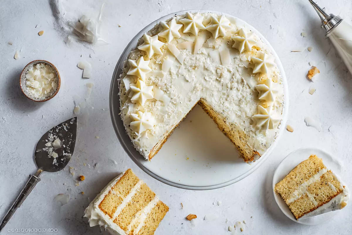 Нежный кокосово-маковый торт с шелковистым кремом: выпекается одним коржом, собирается легко и не требует пропитки.