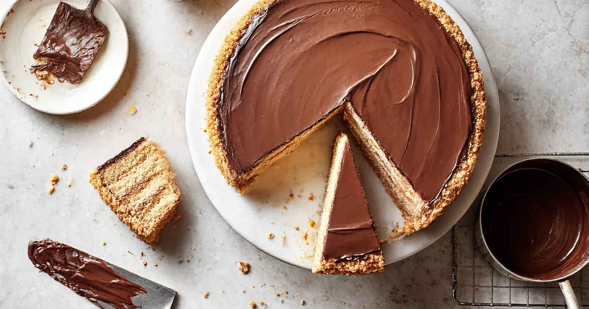 Домашний «Ленинградский»: песочные коржи, масляный крем на сиропе и простая шоколадная глазурь — без хлопот и без пропитки.
