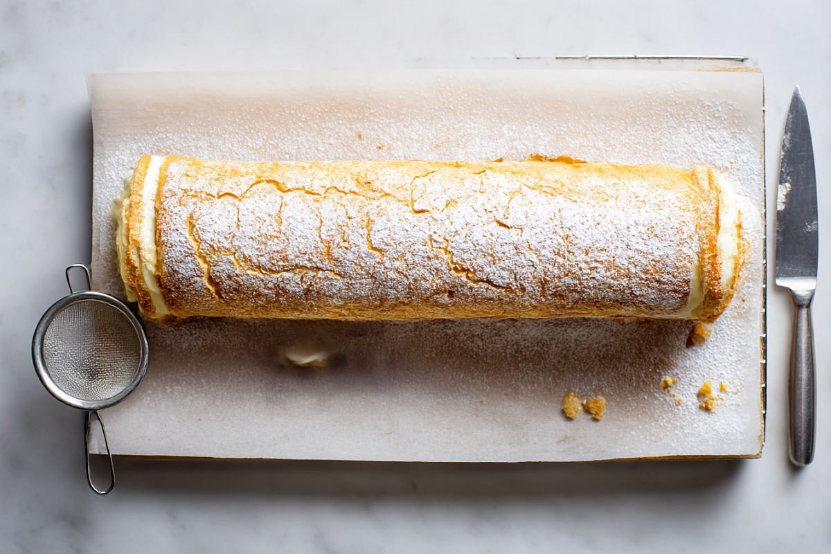 Нежный заварной рулет с ванильным кремом: готовится просто, выглядит нарядно и на вкус напоминает любимые эклеры.