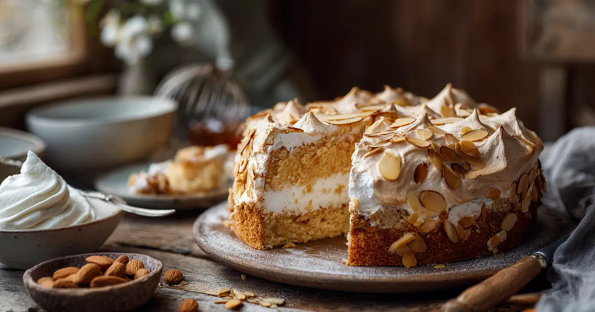 Этот торт сочетает хрустящую меренгу, нежный бисквит и крем. Готовится просто, а съедается мгновенно.