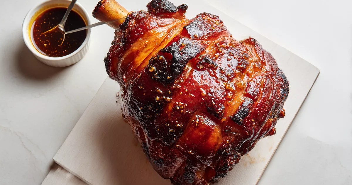 Смажьте рульку глазурью со всех сторон и запекайте при 150 °C ещё около 20 минут до аппетитного блеска. Перед подачей дайте 5–10 минут «отдохнуть».