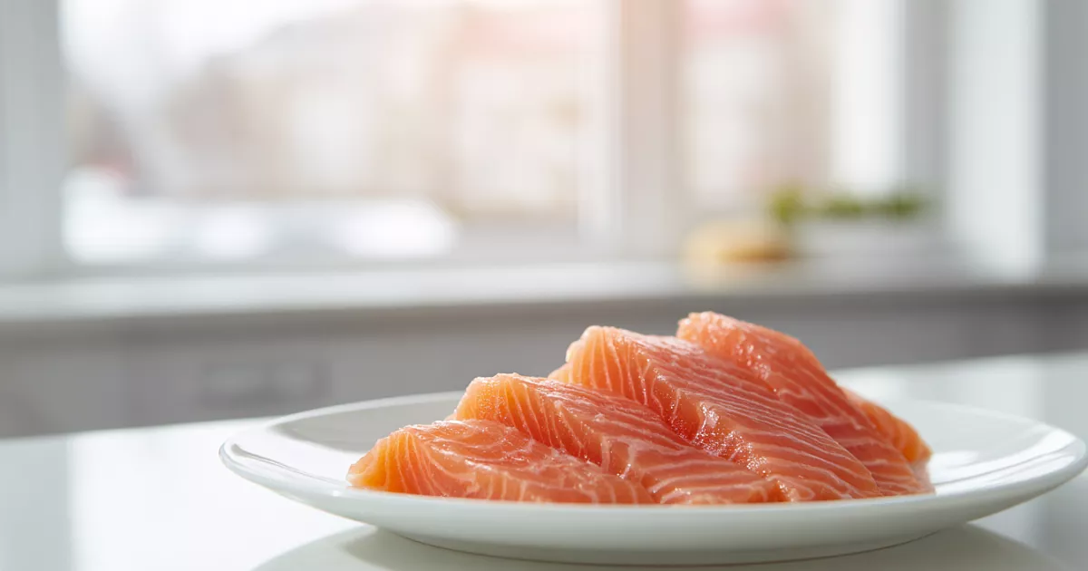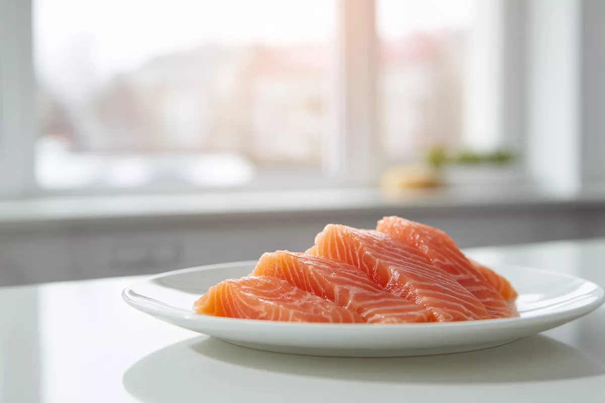 Форму затягивают плёнкой, ставят в холодильник на 10–20 часов. Оптимально 15 часов для средней солёности. Рыбу обсушивают бумажным полотенцем, не промывая. Срезают с кожи, нарезают ломтиками 1 см.