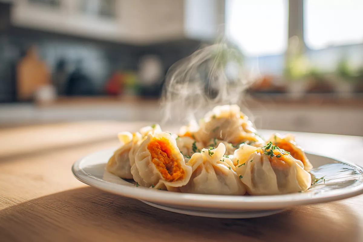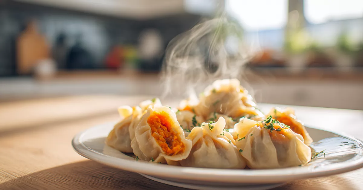 Манты едят горячими с соусом или сметаной. Оставшуюся часть тыквы хранят кусками в холоде.