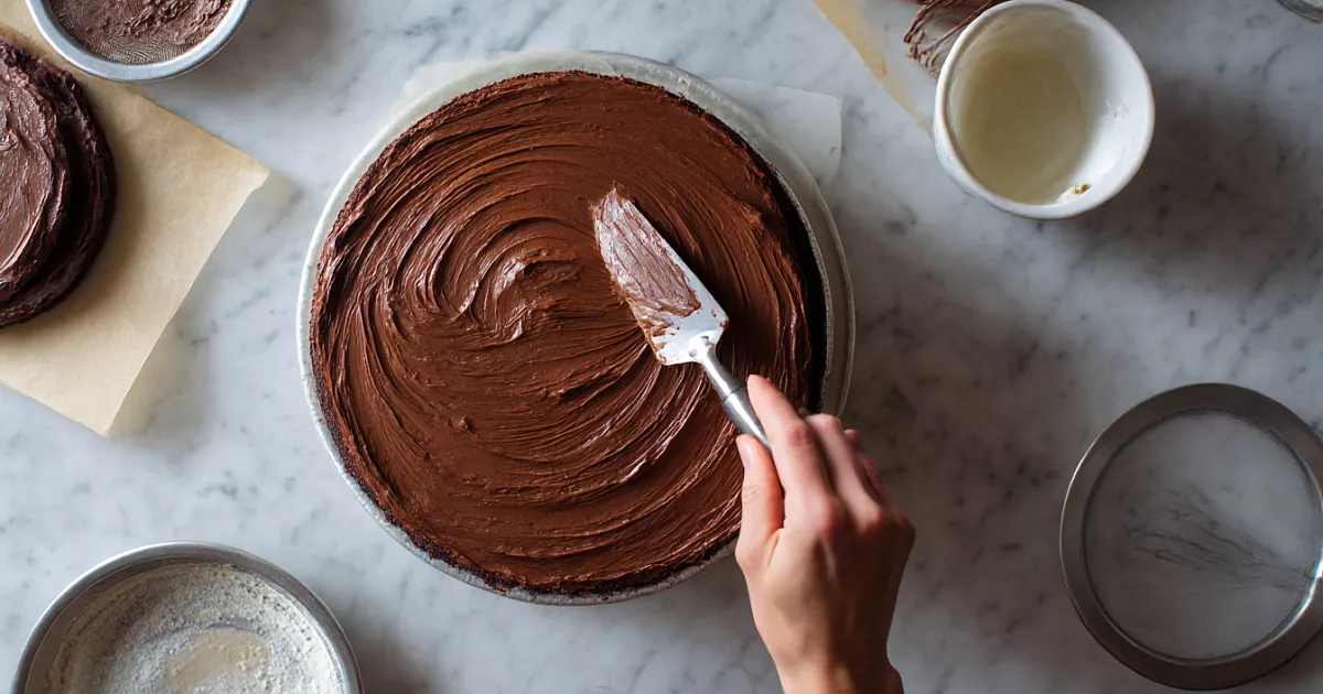 На подложку нанесите ложку крема, уложите первый корж и распределите 3–4 столовые ложки крема. Сборку продолжайте, чередуя коржи и крем. Бока и верх покройте тонким слоем, присыпьте крошкой из обрезков. Уберите для стабилизации минимум на 2 часа, лучше на ночь — за это время коржи равномерно впитают крем.