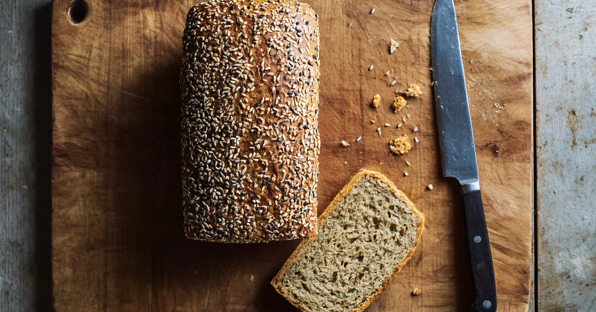 Лёгкий хлеб на пшене без муки, дрожжей и закваски: всё измельчаем, переливаем в форму и выпекаем до румяной корочки.