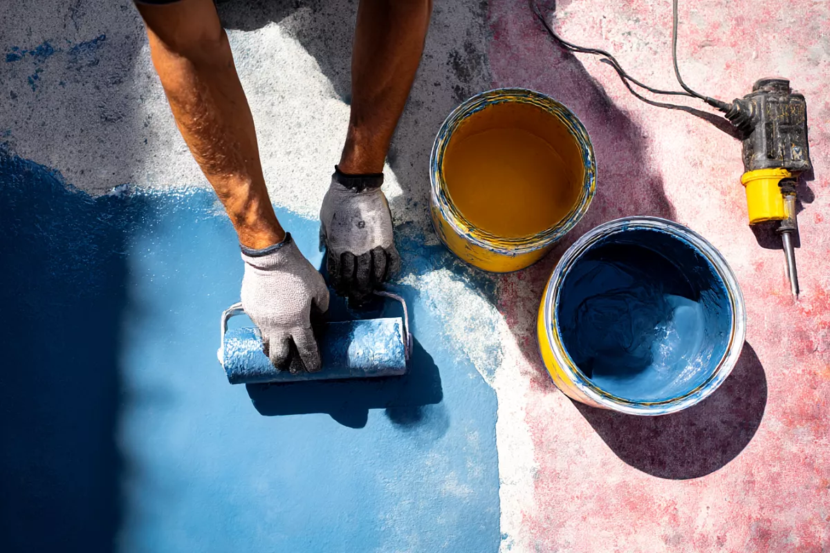 Для бетонной формулы грунт не требуется: состав сам заполняет поры, а валик обеспечивает ровное покрытие уже в первый проход. Дайте просохнуть заявленное время — тогда износостойкость и водоотталкивание проявятся полностью.