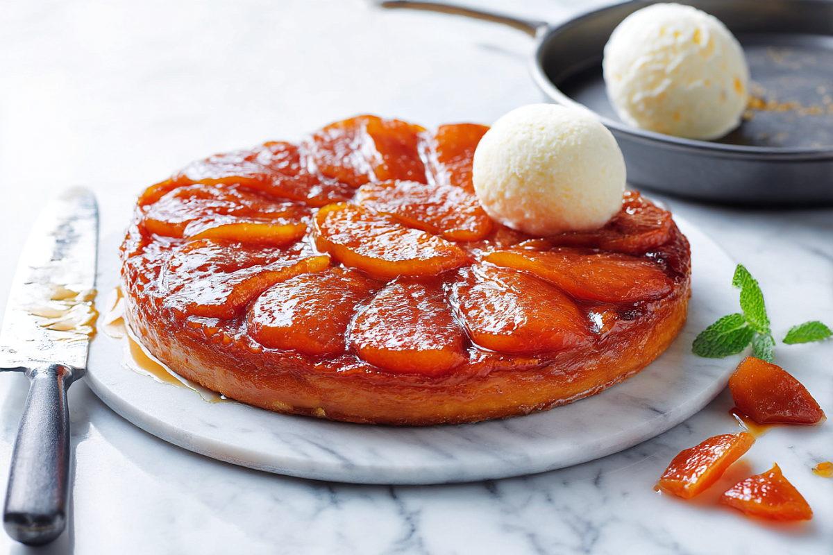 Тарт татен родился случайно в конце XIX века: пирог собрали «вверх дном» и подали так, как есть. С тех пор его пекут во всём мире и часто подают тёплым с ванильным мороженым.