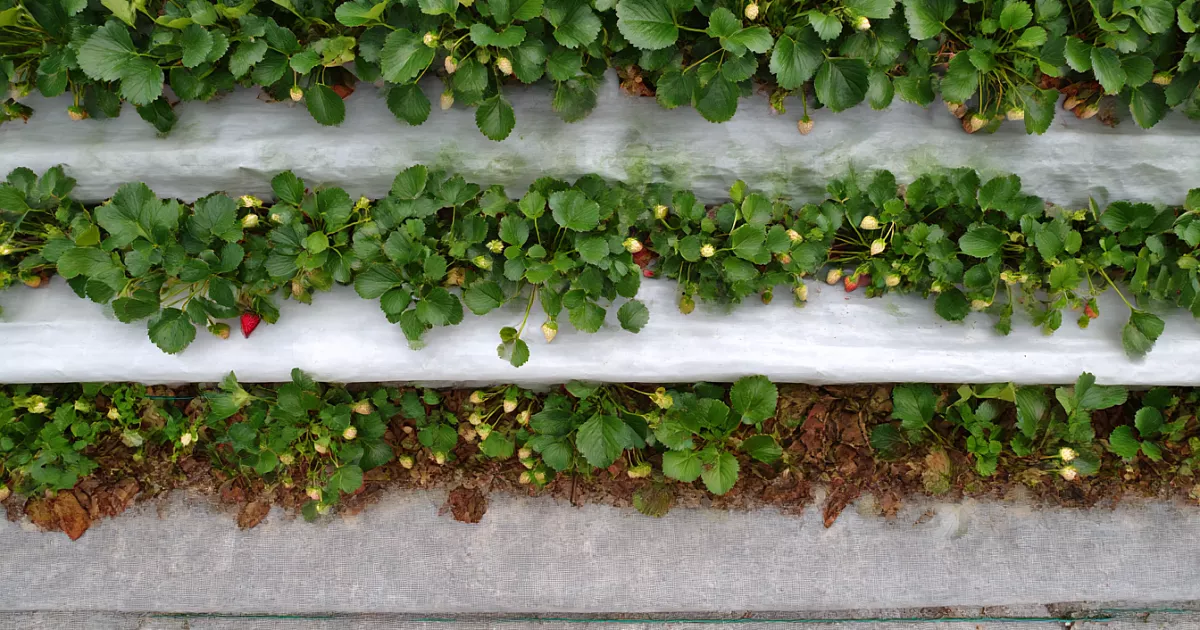 Большинство опытных клубничников укрывают посадки спанбондом «шестидесяткой» в один слой. Так делают и на больших площадях, в огромных «балаганах» — так называют большие теплицы. Это простой и рабочий подход без сложных конструкций.
